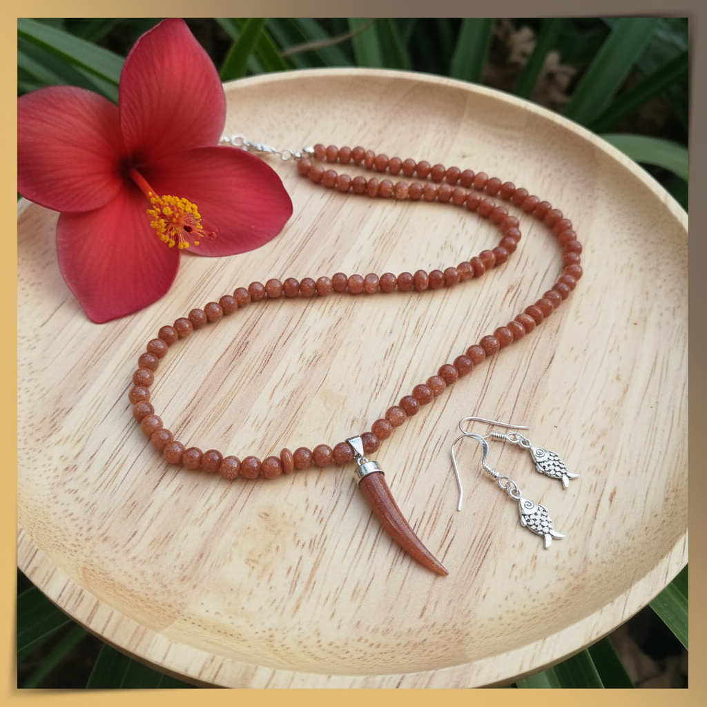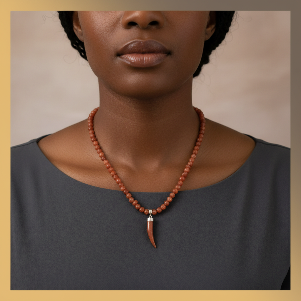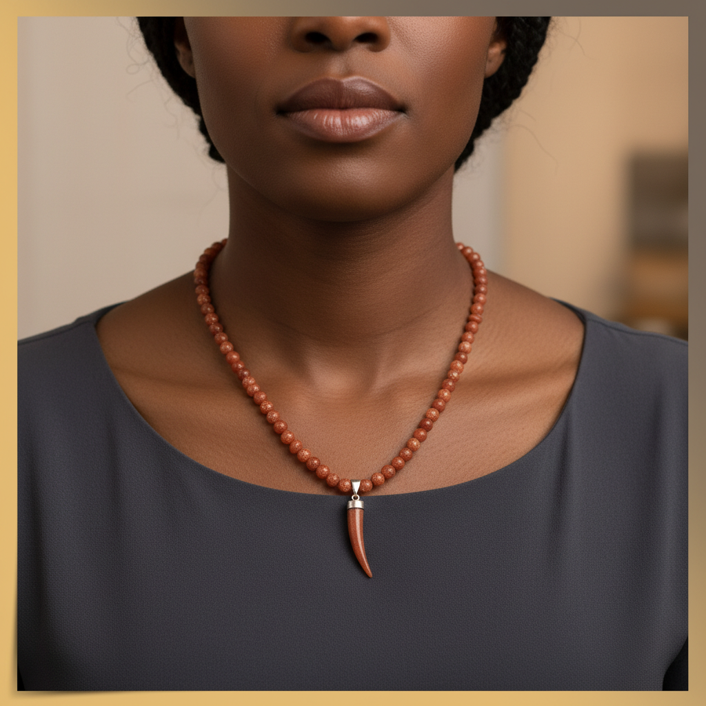 Handmade necklace with gold sandstone beads, known for their warm brown tones and subtle golden sparkles. includes pendant